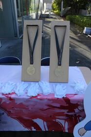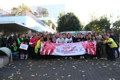 そのほか、デフリンピックの紹介と聴覚障がい理解に関するパネルの展示や、手話をベースにした拍手や声援を送る応援スタイル「サインエール」などを参加者全員で行いました。