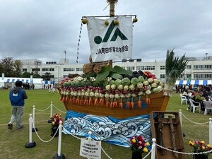 - 農産物品評会出品作品・野菜宝舟・花で作ったまち☆ベジマークの展示