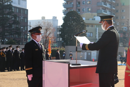 新年を迎え、日ごろ訓練に励む消防団の勇姿を披露し、消防団員の士気高揚を図るとともに、消防団の活動を広く市民へ周知し、市民の皆様に防火防災への理解を深めていただくための式典です。
