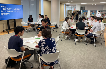 検討、具体化したファーストアクションの発表は寸劇を行いました。チームメンバー全員が必ず配役を持ち、約3分間の寸劇を演じ切りました。身体を使って表現することでより鮮明なファーストアクションのイメージを膨らませることができました。
