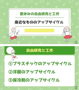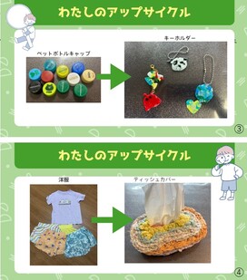 「社会の授業でごみの勉強をしたので、夏休みの自由研究でごみを減らす工夫について調べてアップサイクルの工作をしました」