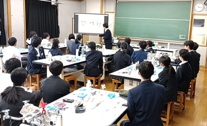 町田市教育センターと連携し、今回は町田市立鶴川中学校で「水素エネルギーと燃料電池」に関する講座を実施しました。講師として水素エネルギー協会に所属されている横浜国立大学の石原顕光先生をはじめ、7名の方が来てくださいました。