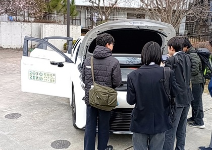 講座の最後には燃料電池自動車(FCV)を実際に見学してもらいました。