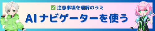 - 利用規約(PDF:161KB)に同意した上でAIナビゲーターをご利用下さい。