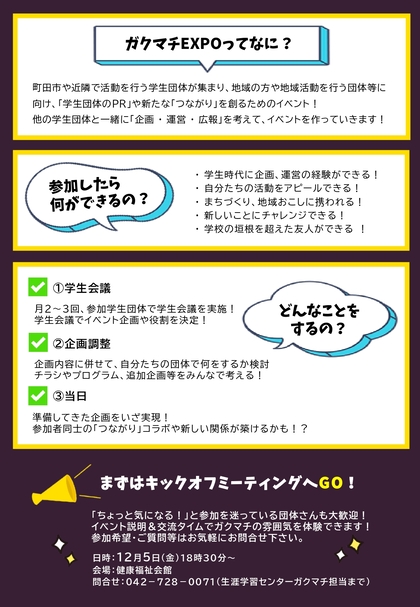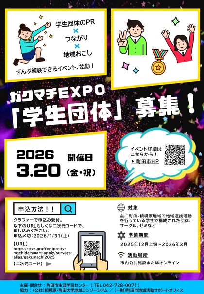 2025年度 学生活動報告会『ガクマチEXPO』学生団体募集チラシ(PDF・596KB)