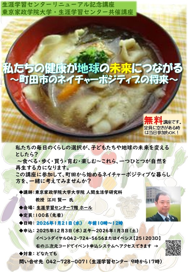 【生涯学習センターリニューアル記念講座】 東京家政学院大学共催講座「私たちの健康が地球の未来につながる」