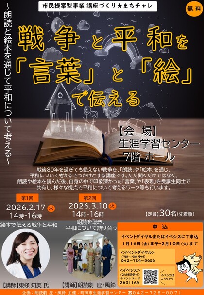市民提案型事業 講座づくり★まちチャレ「戦争と平和を「言葉」と「絵」で伝える~朗読と絵本を通じて平和について考える」【全2回 】