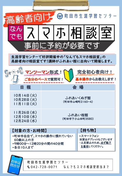 高齢者向け なんでもスマホ相談室(9月~12月)