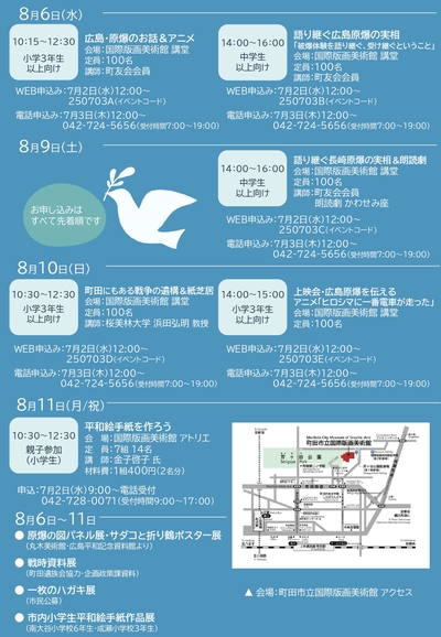 町田市立国際版画美術館にて、町田および日本が経験してきた戦争を振り返り、“戦争の悲惨さ”“平和の尊さ”について改めて考えていただくために、2025年度も夏の平和イベントを開催しました。