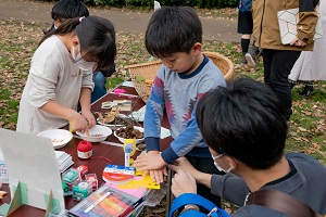 公園に落ちている”みどりのおとしもの”(花びら、葉っぱなど)を使った、壁飾りづくりのワークショップを行いました。
