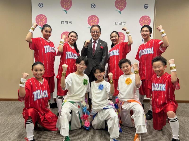 チームを代表して内山ひなたさんは「全国大会で金賞という素晴らしい結果を出すことができ、チーム全体で目標を達成できたことを誇りに思います。これからも成長し続け町田市を盛りあげたい」と語り、間崎晴大さんは「いつも心を込めて教えてくださる先生方、家族、地域の皆さんの温かい応援で取れた金賞です。これからも周りの人の感謝を忘れずに頑張りたい」と大会を振り返りました。