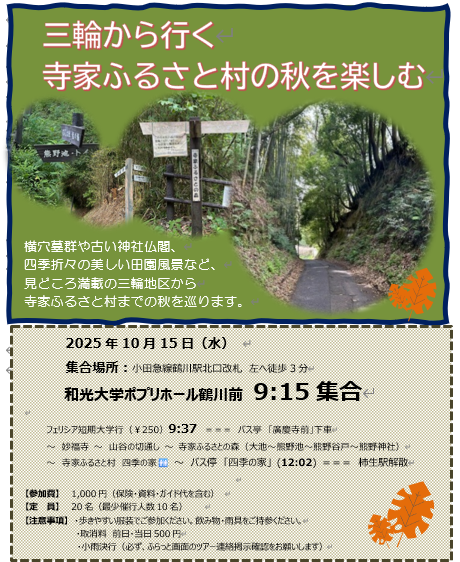 成瀬・三輪・鶴川・小野路・小山田を巡る深堀ガイドツアー