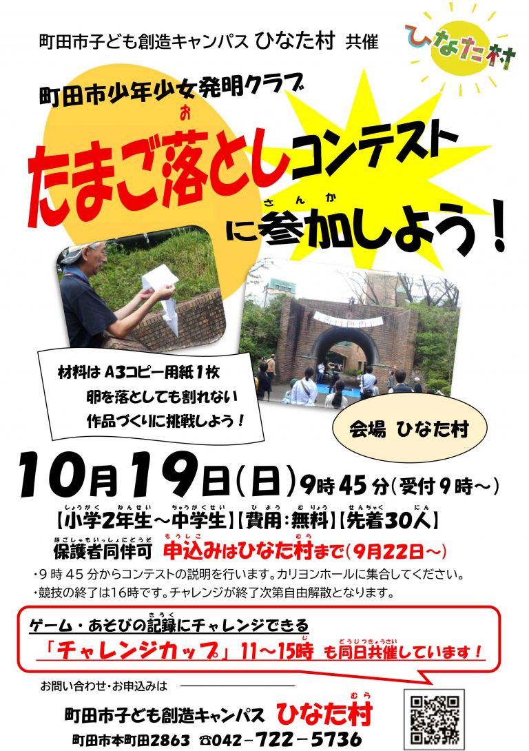"発明クラブ" の【 たまご落としコンテスト】(小2~中学生)