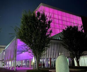 ピンクリボンカラーに市庁舎をライトアップ