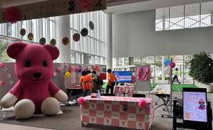 東京都乳がん検診普及啓発事業公式キャラクターのモモバルーンが会場でお迎えします。