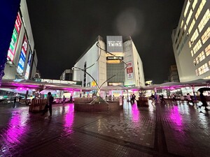 ピンクリボンカラーにJR町田駅ペデストリアンデッキの上をライトアップ
