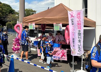9月27日(土曜日)、町田GIONスタジアムのウォータープラザ内に、FC町田ゼルビア、一般社団法人町田市医師会及び町田市が協力して、ピンクリボンブースを設置しました。
