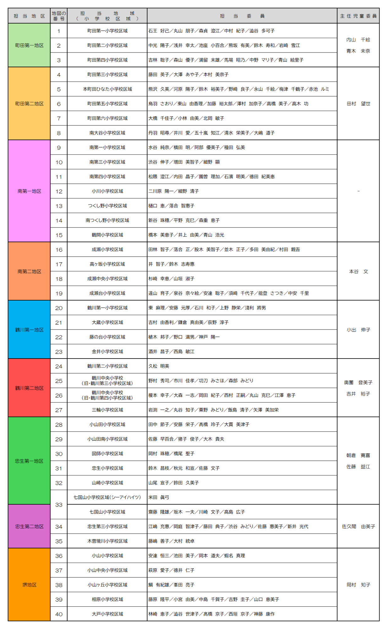 民生委員・児童委員担当地域(小学校区域別)