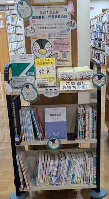 5月12日の「民生委員・児童委員の日」にちなみ、2026年4月10日(金曜日)から5月13日(水曜日)まで、中央図書館にて特集コーナーを設置しています。特集コーナーでは、民生委員に関する図書や子育て・高齢者に関する図書、オリジナルグッズを設置しますので、ぜひお立ち寄りください。