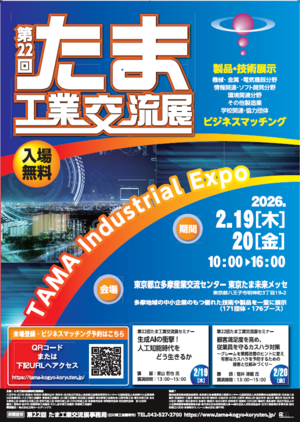 多摩地域の中小企業が有する個性豊かな技術や製品を一堂に展示し、製品開発力や加工技術等の紹介を通じた受注の拡大、パートナー企業の発掘に向けた情報収集など多摩地域の工業振興に繋がるビジネスチャンスの場を提供すること、学生・研究者との交流による産学連携の目的に開催します。