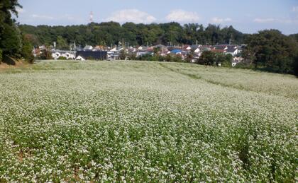 町田薬師池公園四季彩の杜の北西、ぼたん園やふるさと農具館、七国山ファーマーズセンター近くの畑で、そばの花が見頃を迎えます。