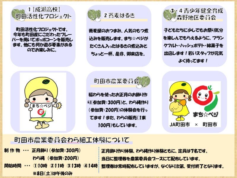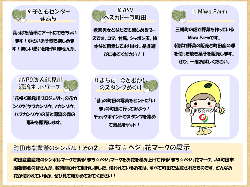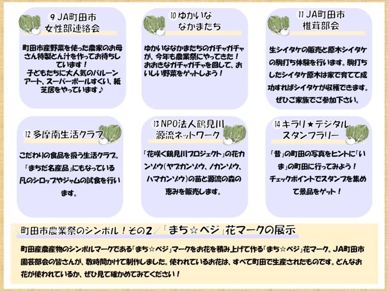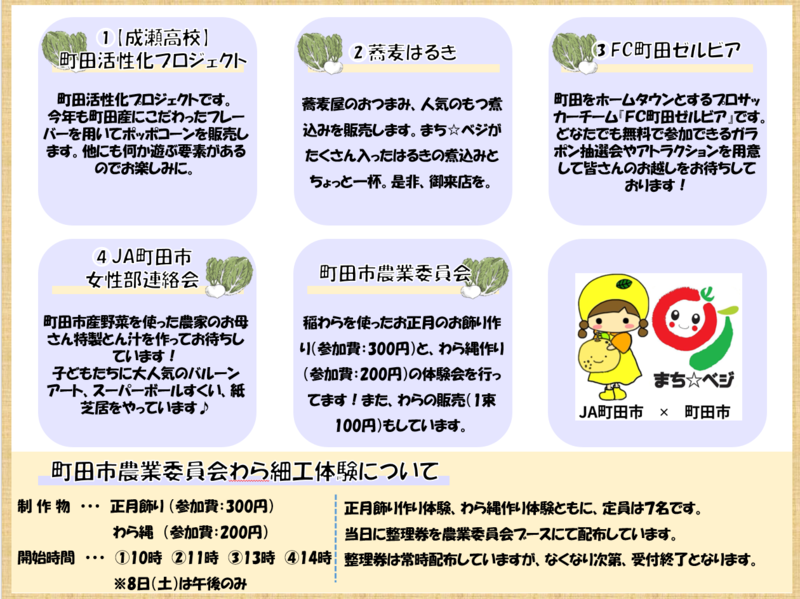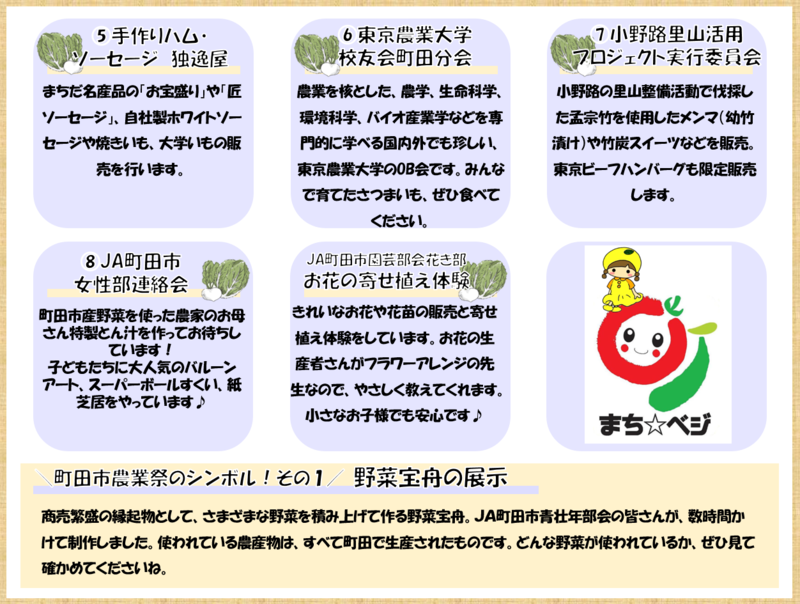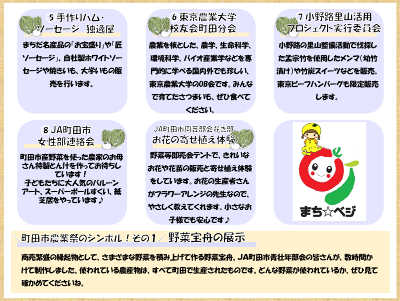 市内農業者や飲食店、学生団体、町田市農業委員会等によるブースが出店します。