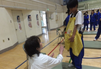 中学生からは、 「妊婦体験で7~8kgの赤ちゃんをずっと抱えたり、その状態でくつ下を履く体験をすることで妊婦さんの辛さがよく分かりました。」