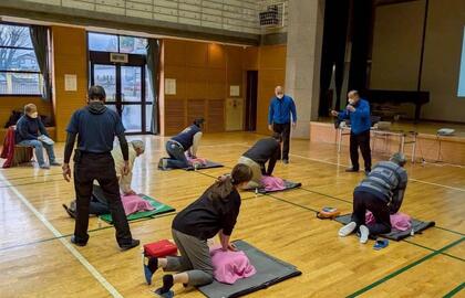 交通事故や地震、洪水などによる事故災害の発生時において、救急救命が行える人材の不足が懸念されます。消防署のご指導を受け、救急救命の救命技能認定の取得を考えている地域の住民を対象にして、人材育成を目的に認定取得を支援します。