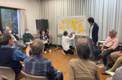 まず冒頭に地域住民の居場所づくりを行っている「陽だまりカフェ」のオーナーから成瀬台地区で行われている地域活動をご紹介いただきました。その後、3つのグループに分かれて「やりたいこと」「あったらいいな」を付箋に書き、アイディア出しを行いました。限られた時間でしたが、皆さんの想いが込められた意見交換の場になり、思わず「楽しそう!」と言いたくなるアイデアもたくさん出てきました。