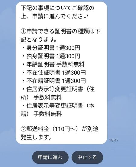 - 「諸証明交付申請」を選択し、そのあと「その他証明書」をタップしてください。