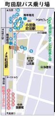 小田急町田駅北口(POPビル先)21番乗り場(左図の緑色の21番)から本町田経由鶴川駅行き、または、本町田経由野津田車庫行きバスで「薬師ケ丘」下車、徒歩7分です。