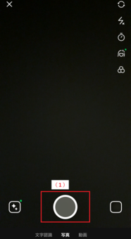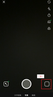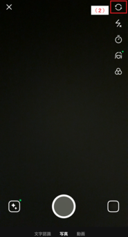 ※ディスプレイ側のカメラ(インカメラ)で起動した場合は、画面右上の回転アイコン(2)をタップして切り替えてください。 - 保存済みの写真を選ぶ場合