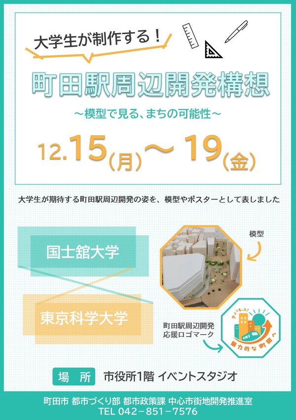 町田駅周辺の開発に期待を込め、国士舘大学と東京科学大学の学生がイメージする町田駅周辺の姿を模型などで表し、展示します。